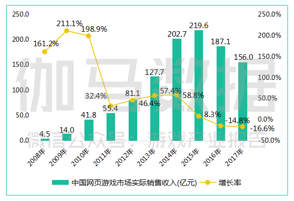 与移动游戏和客户端游戏的情况相比,网页游戏呈现连续下降状态。报告显示,今年中国网页游戏市场实际销售收入达到156.0亿元,同比下降16.6%,收入连续两年出现负增长。受用户需求改变、新产品减少等因素影响,网页游戏市场进一步萎缩,市场实际销售收入明显降低,用户数量减少。