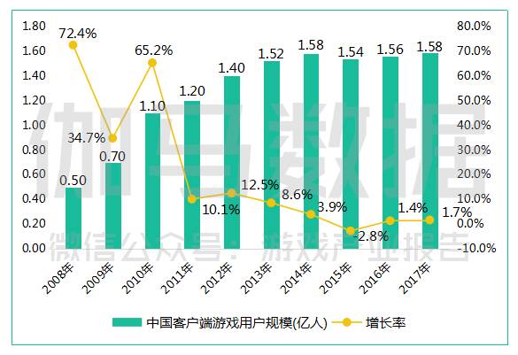 在用户方面,近几年中国客户端游戏的用户数量已经趋于平稳,今年的波动也依然不大。报告显示,今年中国客户端游戏用户规模达到1.58亿人,同比增长1.7%。