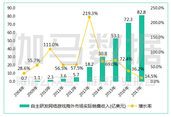 海外市场方面,报告显示,今年中国自主研发网络游戏海外市场实际销售收入达82.8亿美元,同比增长14.5%。
