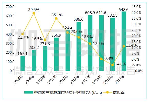 除了移动游戏的收入喜人外,今年客户端游戏的收入情况也出现了一定的回暖迹象。报告显示,中国客户端游戏市场实际销售收入达到648.6亿元,同比增长11.4%。