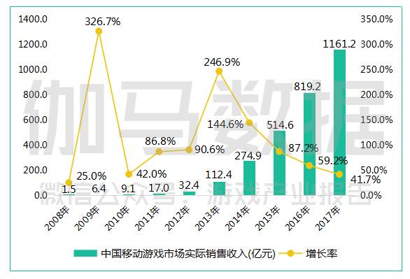 2017中国游戏产业实际营收达2036.1亿 手游达1161.2亿元